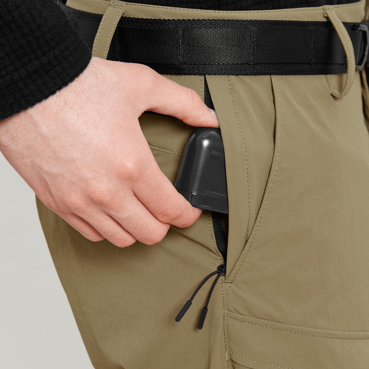 Класична модель штанів із двома кишенями, вироблена з еластичного легкого нейлону / лайкри із водовідштовхуючим покриттям для теплої / вологої погоди.