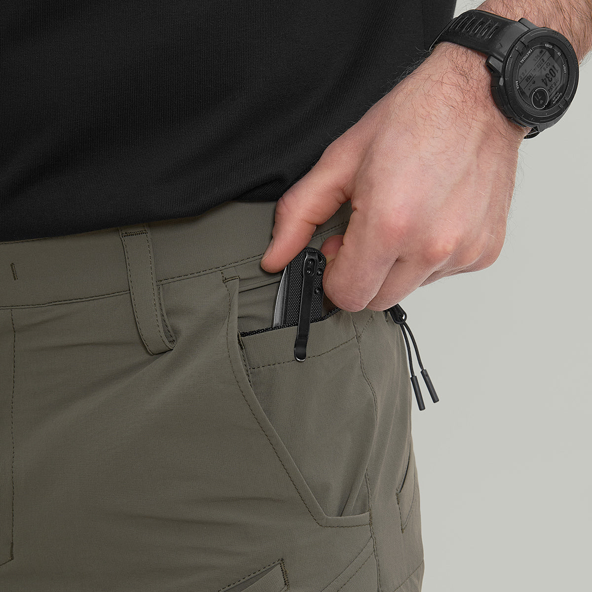 Класична модель штанів із двома кишенями, вироблена з еластичного нейлону із водовідштовхуючим покриттям. Версію Gen.4 доповнено додатковими кишенями для кращої організації та іншими конструктивними рішеннями.