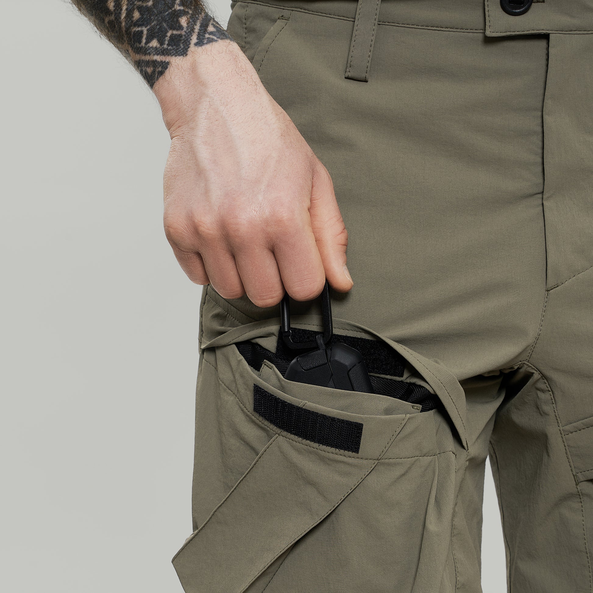 - дві карго кишені на велкро застібках попереду / внутрішнє відділення у правій кишені