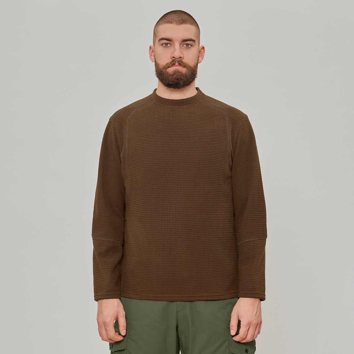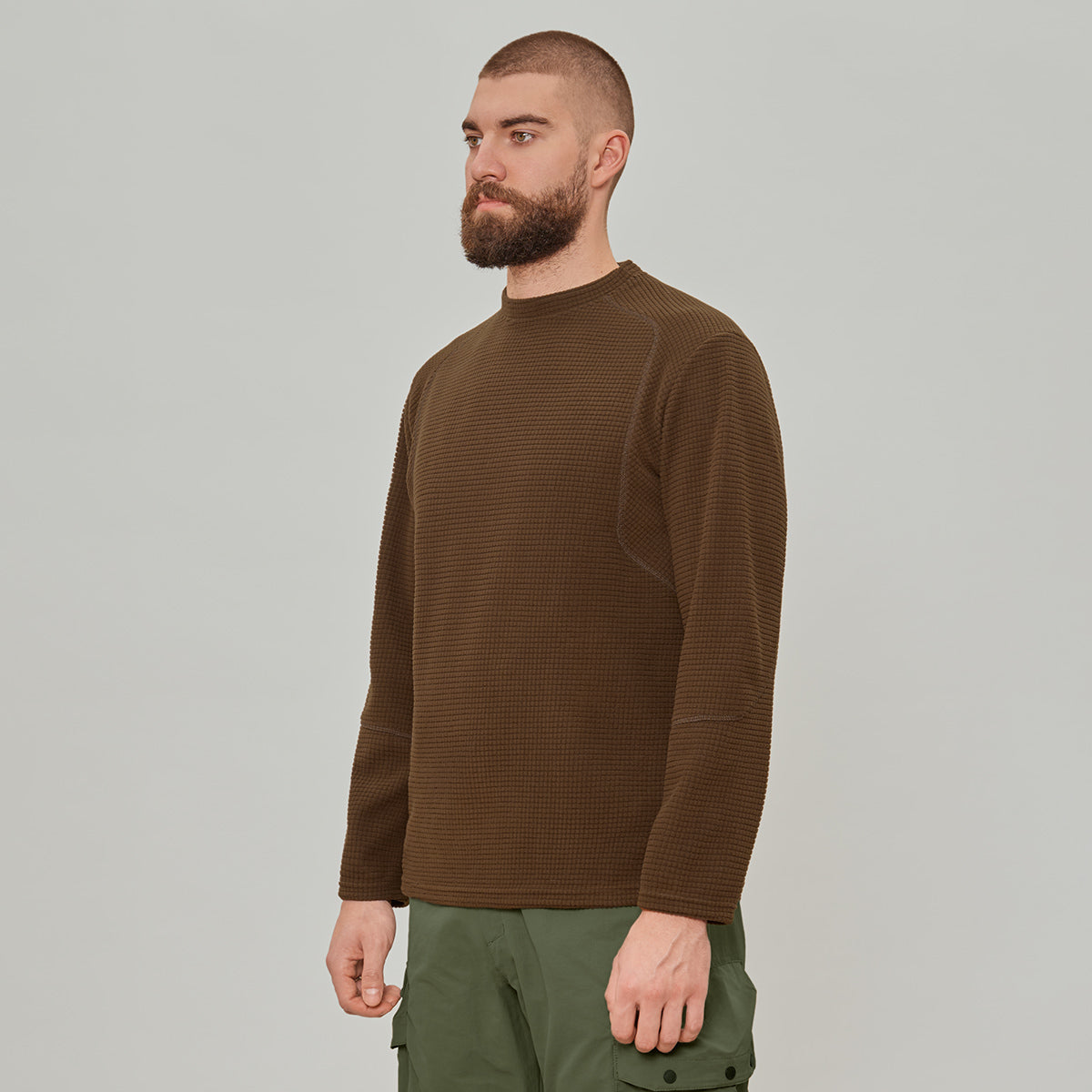 Лонглів стандартної посадки. Текстура "grid fleece" забезпечує поліпшену терморегуляцію.