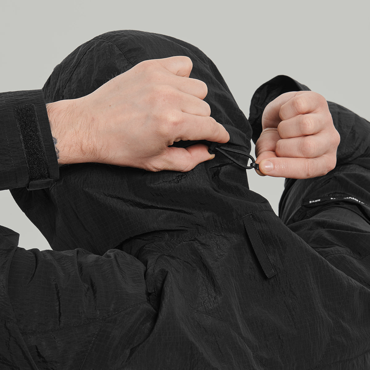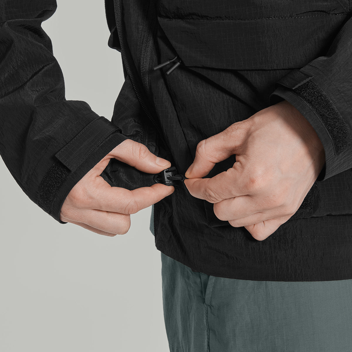 - капюшон та низ куртки з регулюючими затяжками для захисту від негоди